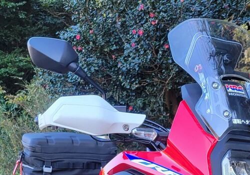 CRF190L よーやっと中国HONDA純正の エンジンガードとアンダーガードを手に入れた それなりに仕上がったところで•••人気もない笑 で、まだシックリ来てないのが「ハンドガード」 アフリカツイン1000の純正のハンドガード(中古) 全体的にパランスが悪い だか…